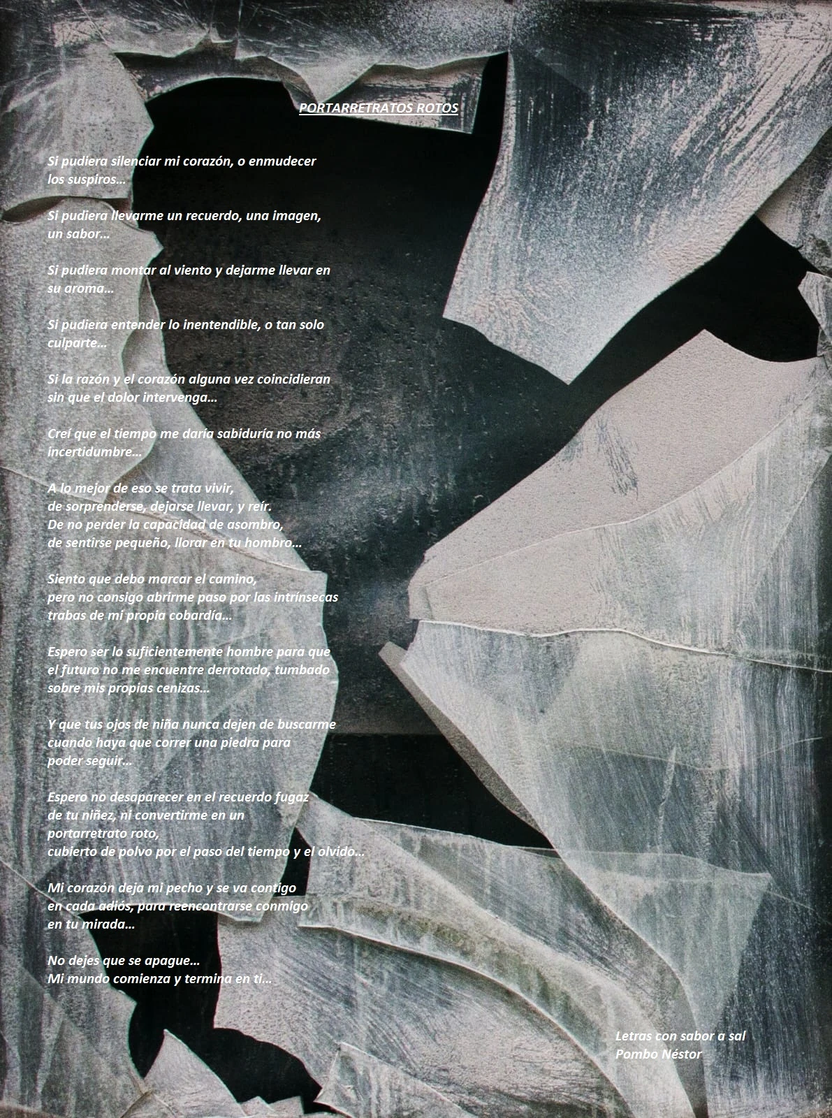 Sumergite en la intensidad emocional de "Portarretratos rotos", un poema de Pombo Néstor que encuentra su forma completa en este paquete exclusivo. Una experiencia sensible y estética que combina palabra, imagen y sonido.